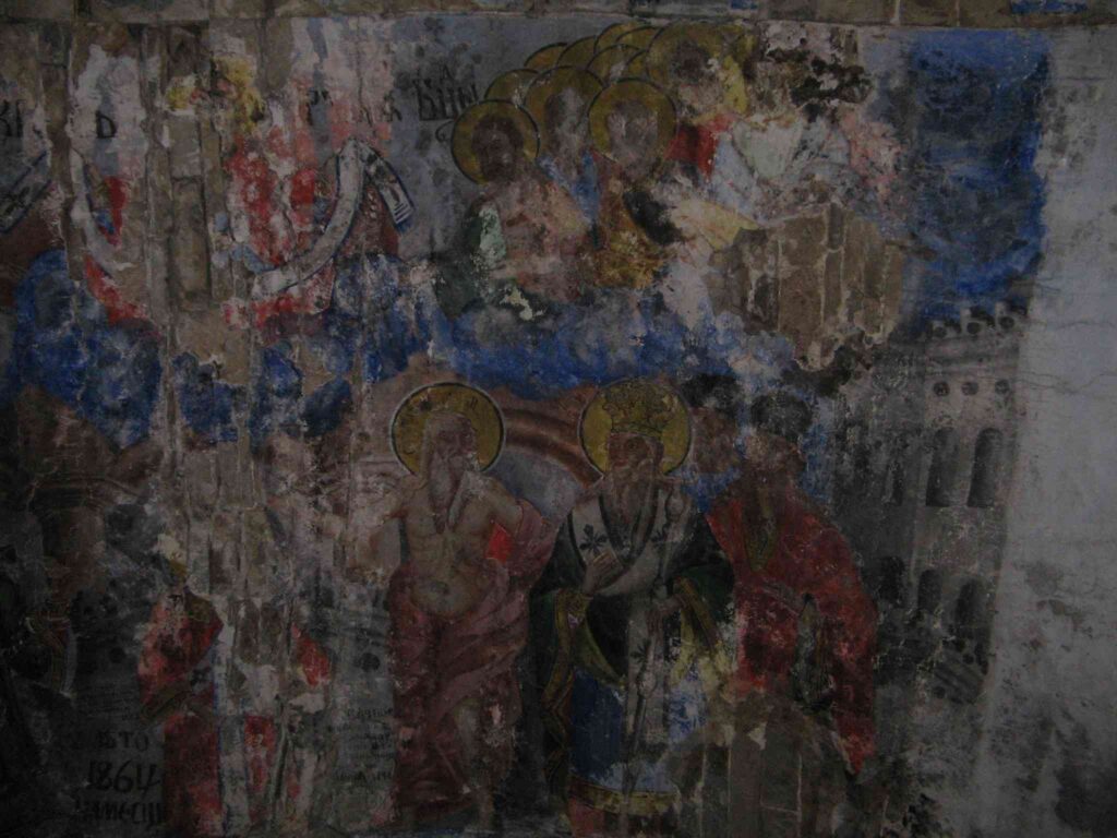 Според датата, изписана до ктиторския надпис в сцената “Покров на Пресв. Богородица”, църквата е била зографисана през 1864 година. Стенописите са изпълнени от добре школуван зограф. Кой е той не се знае.