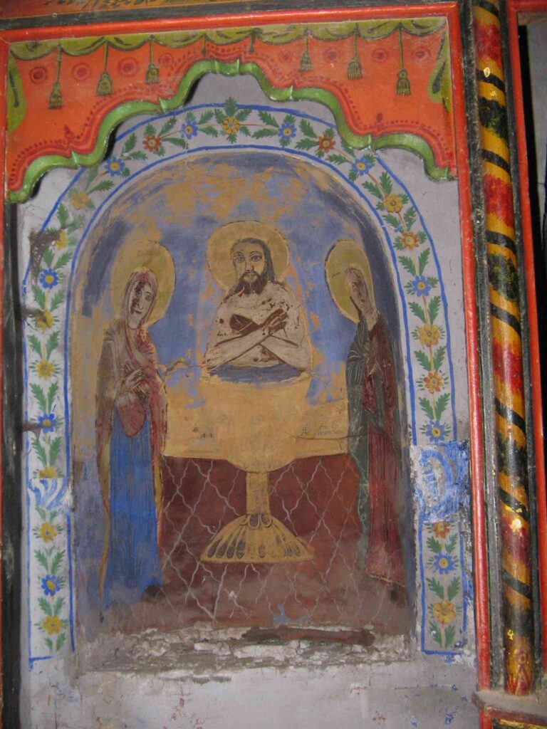 Каменните релефи и техниката на изпълнението са невероятни. Иконостасът, който има само две врати – царска и дяконска – само допреди двайсетина години е заобиколен с три реда икони – големи (“царски”), “празнични” и “апостолски ред” с “дейсис” (композиция с образите на Исус в средата и от двете му страни Дева Мария и Йоан Кръстител) в центъра.